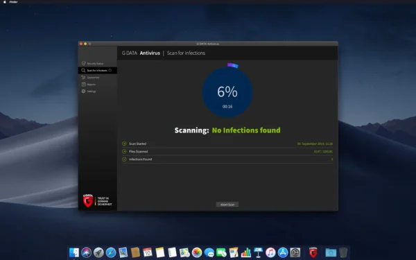 A G Data Antivirus for macOS vírusirtó szoftver megóv minden Mac-es kártevő ellen, beleértve a trójaikat és az adathalász kísérleteket is.